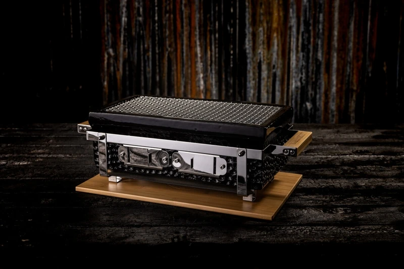 Deze rechthoekige barbecue van YAKINIKU heeft een RVS-rooster en is alleen buiten te gebruiken met houtskool van Binchotan of zelf-ontbrandende briketten. De Binchotan houtskool is het zwarte goud van Japan, omdat deze kolen een extreem hoge temperatuur bereiken. Zo behalen de White Maitiew kolen maar liefst een temperatuur van 1000 tot 1200 graden! Met deze Shichirin barbecue haal je de complete Japanse keuken zo naar je achtertuin.